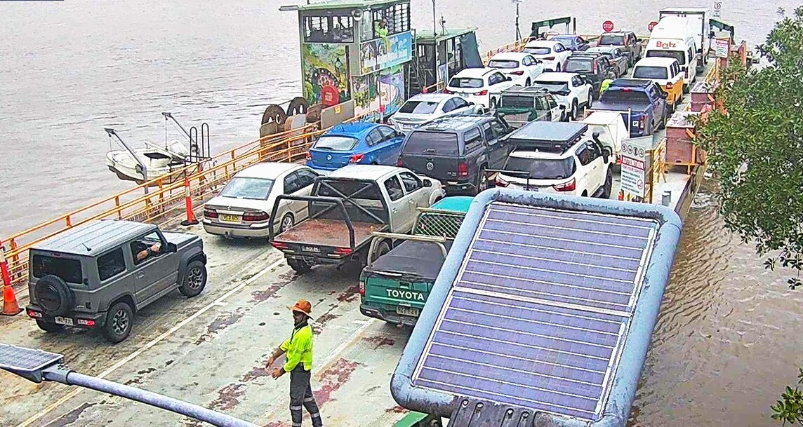 A short time ago, Daintree Ferry resumed services, with full loads of vehicles waiting to cross.