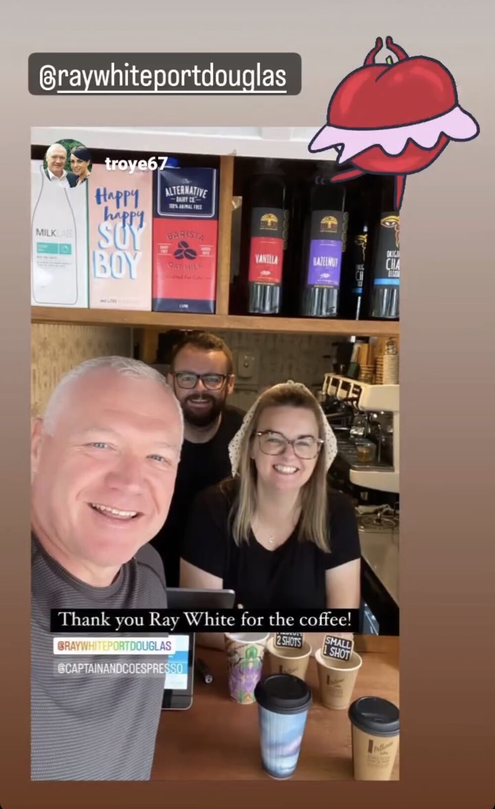 To celebrate Valentine’s Day and to harness and foster goodwill and positive community spirit the team surprised locals and tourists alike from 6.30am this morning by paying for every single person’s coffee that ordered a brew from Captain and Co Espresso in Port Douglas.