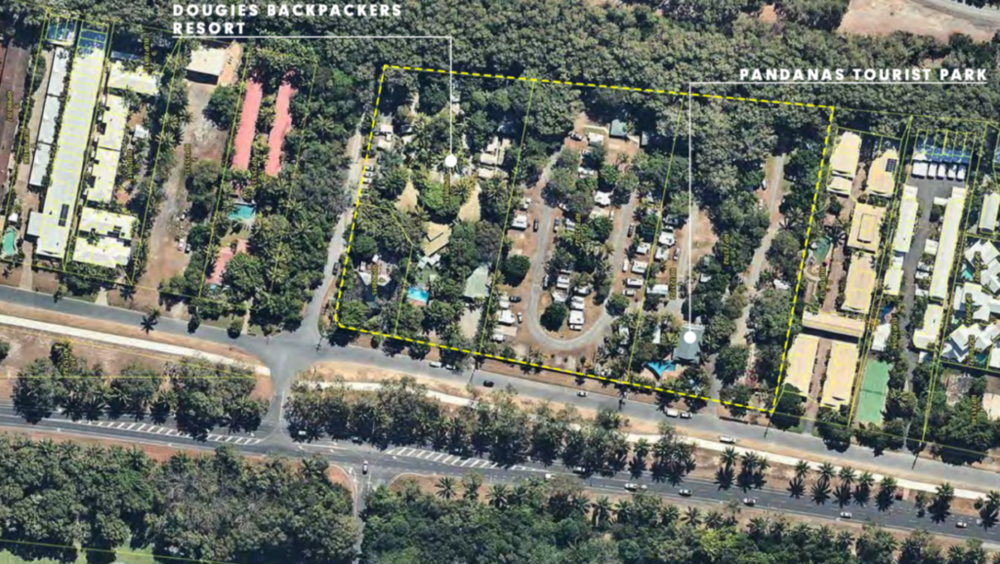 The combined 26,000 square metre block is currently home to Port Douglas Pandanus Tourist Park Caravan Park and Dougies Backpackers Resort.