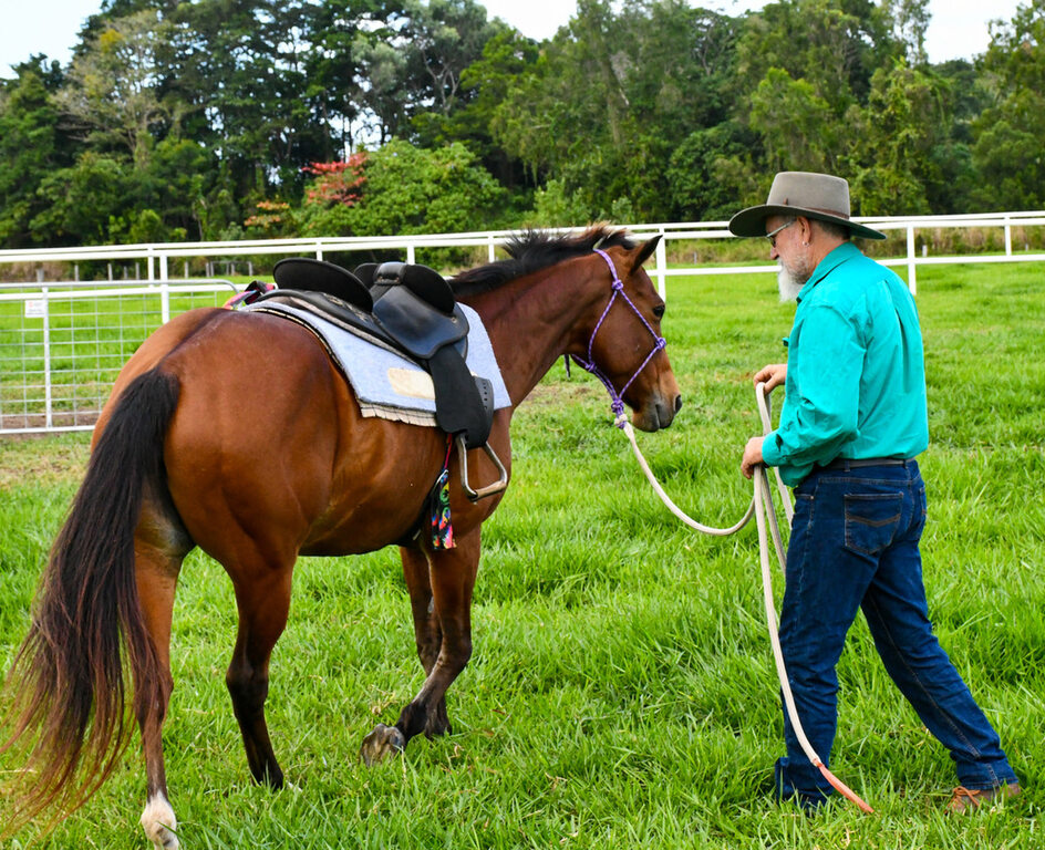 He emphasised the importance of making the horse feel relaxed and learning from the release of pressure, as horses do in the wild.