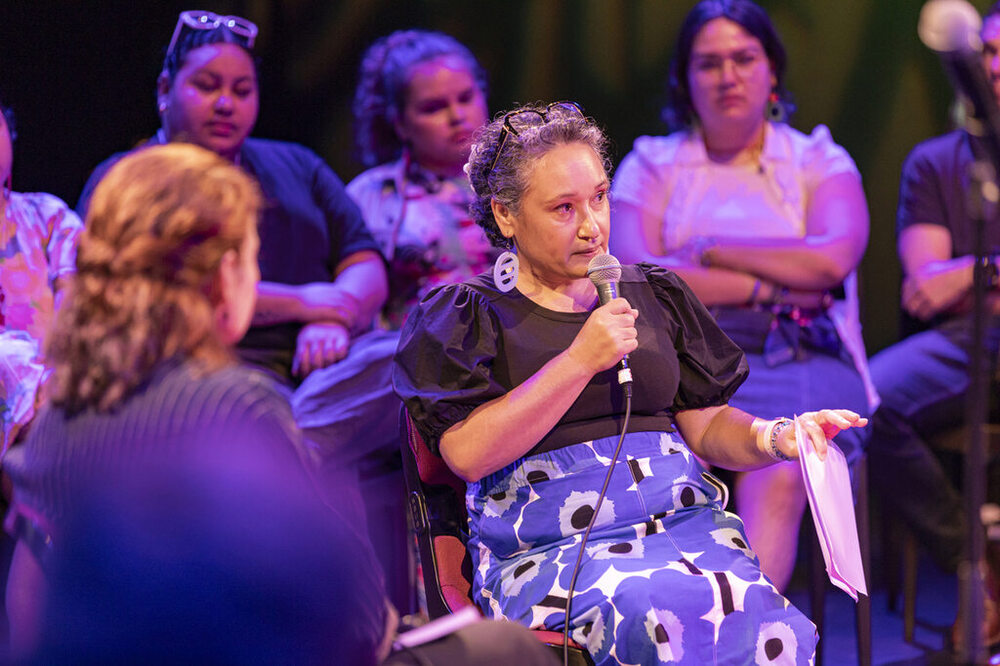Ms Cockatoo-Collins’s garments wove together a tapestry of her family's generational art and culture, showcasing the legacy from her great grandmother's woven basket to her mother's mat making.