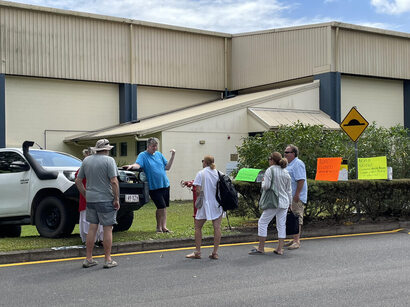 A man determined to ensure Daintree residents and more broadly those right across the Shire have reliable future access across the Daintree river presented a united front during a peaceful protest in front of Mossman’s Council chambers this morning.