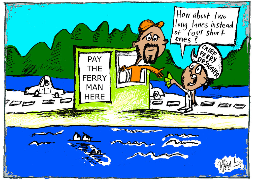 Whether it is a four-lane ferry, a bridge or a combination of both as ol mate Shaun Hollis has suggested in this week’s cheeky cartoon, this looks like a similar story set to keep on giving.