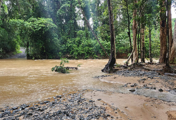 “Swimming in the sea can be challenging during the wet season with stingers and on windy days waves mean the beach may be unsafe for poor swimmers and children.’’
