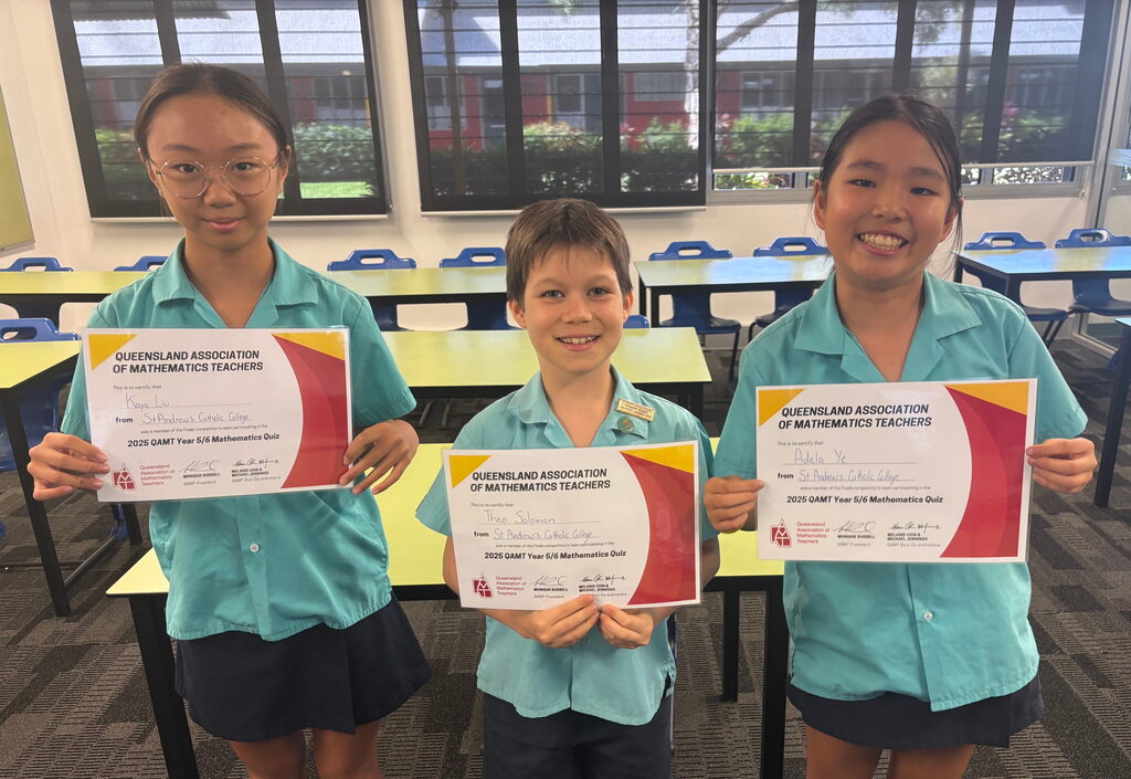 Representing St Andrew’s Catholic College in Cairns, Year 6 students Kaya Liu and Theo Solomon, together with Year 5 student Adela Ye, impressed judges with their problem-solving skills and teamwork.