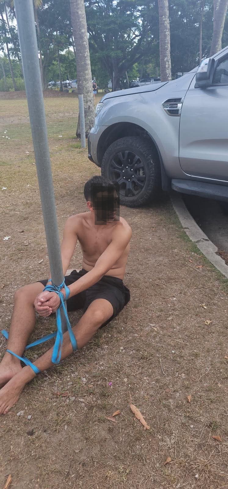 It is understood it was a member of the public, possibly the fishermen themselves, who caught the alleged thief in the act and he was held, his feet and hands bound around a pole, while police were called.