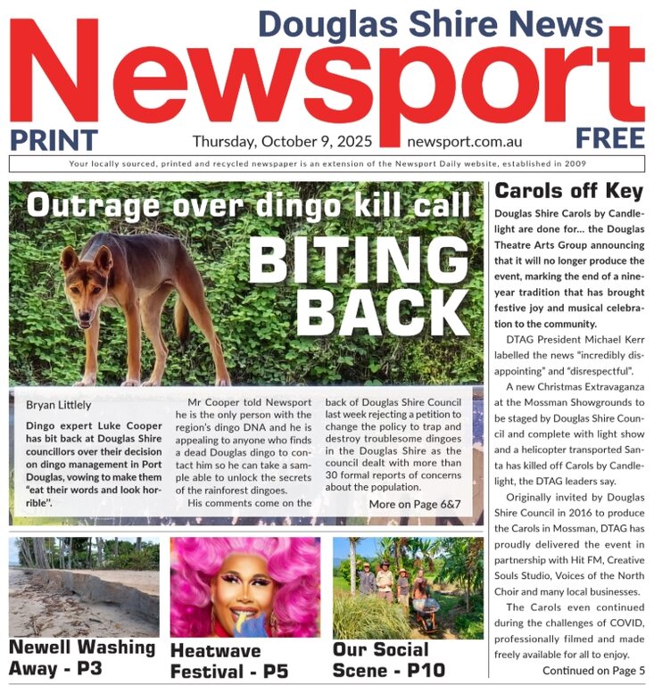 Newsport Daily Print’s FREE edition, out on the streets from today, captures the debate, including claims by expert Luke Cooper that he holds the DNA secrets of the rainforest dingoes, and his vow to use it to “make people eat their words’’.