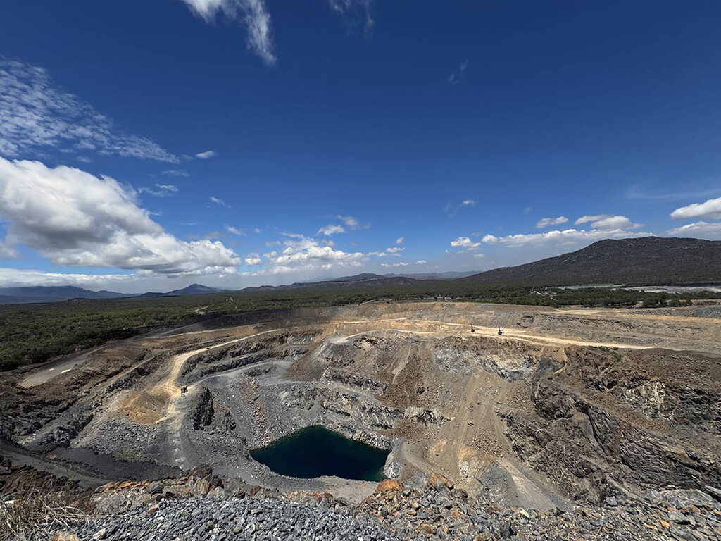 From the top of the site, the open pit stretched out below, revealing glittering quartz veins that hold the valuable tungsten metal.