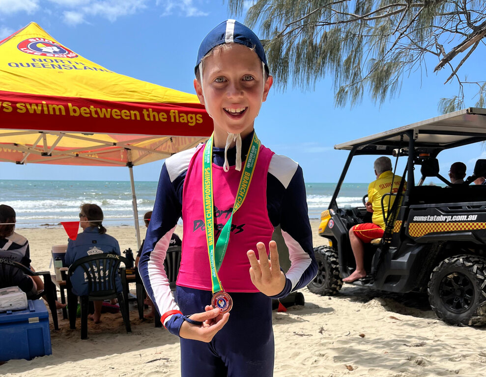 Juan Cupidon wins a bronze sprint medal in surf life saving. Picture: Supplied