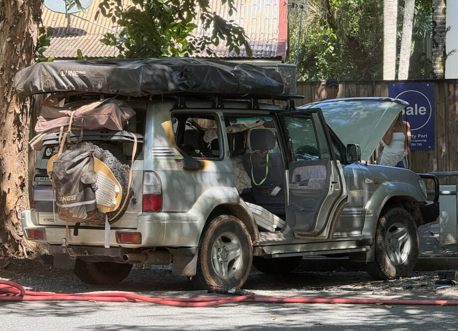 At about 11.10am, a Tony McGrath Real Estate Port Douglas staff member saw a car out the window in front of the shop which was emitting a lot of smoke, and then caught fire near the back driver’s-side window.