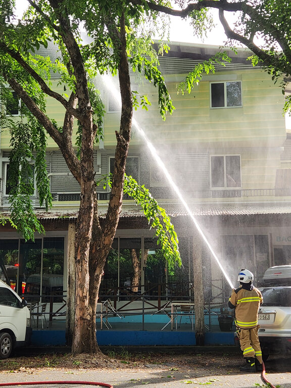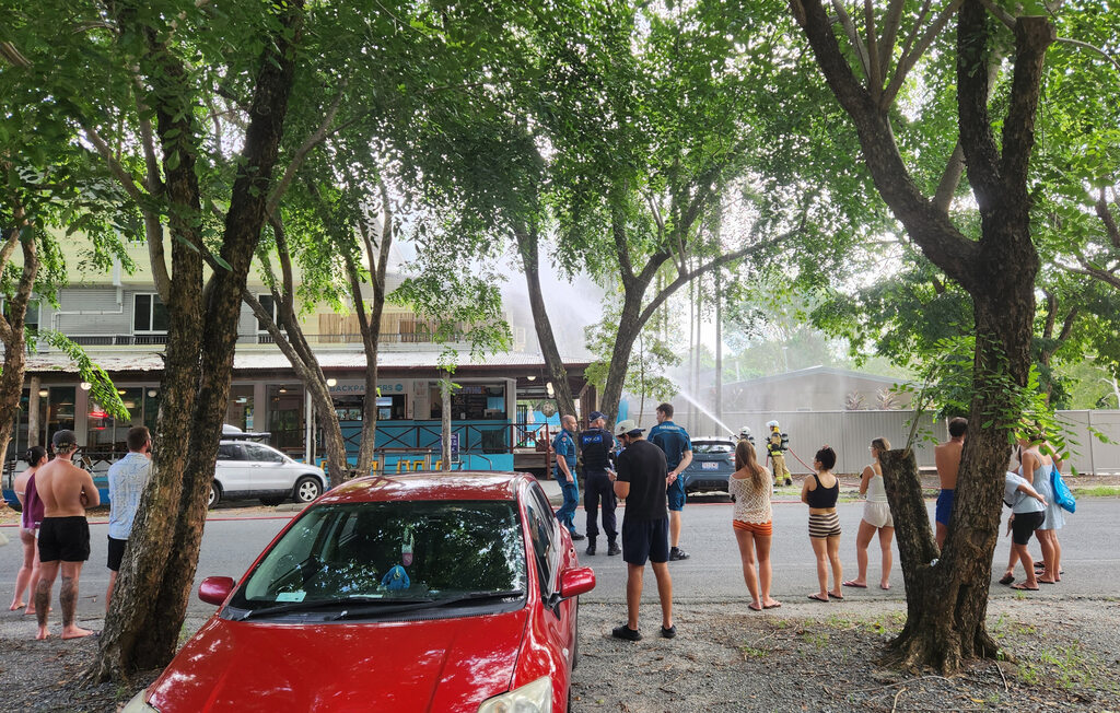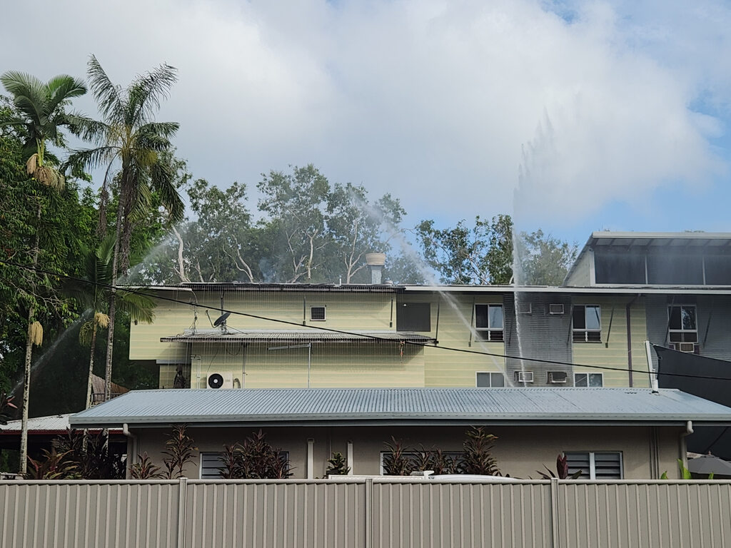 Up to a dozen fireys in two trucks have extinguished a blaze at the Port Douglas Backpacker’s on Warner Street.