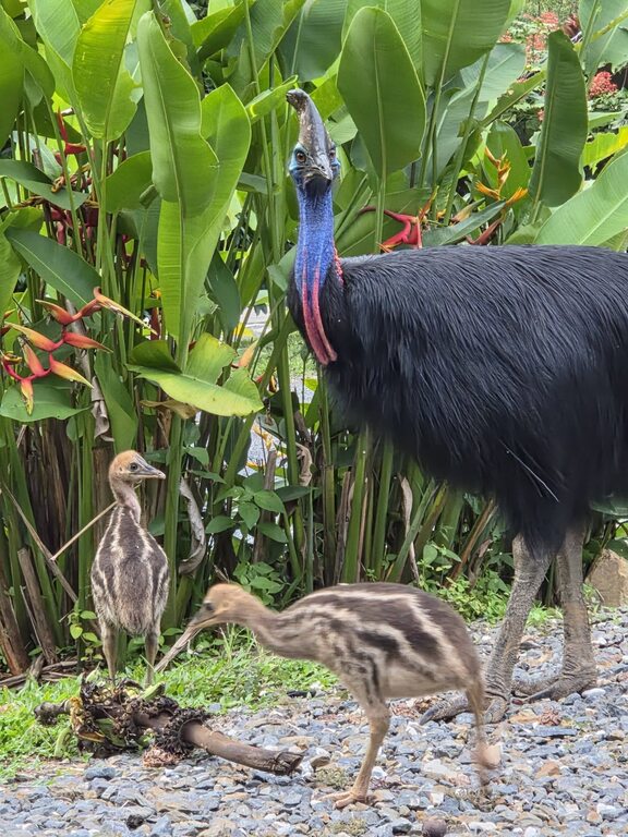 The pictured cassowary did originally have three chics, but one was unfortunately recently killed on the road.