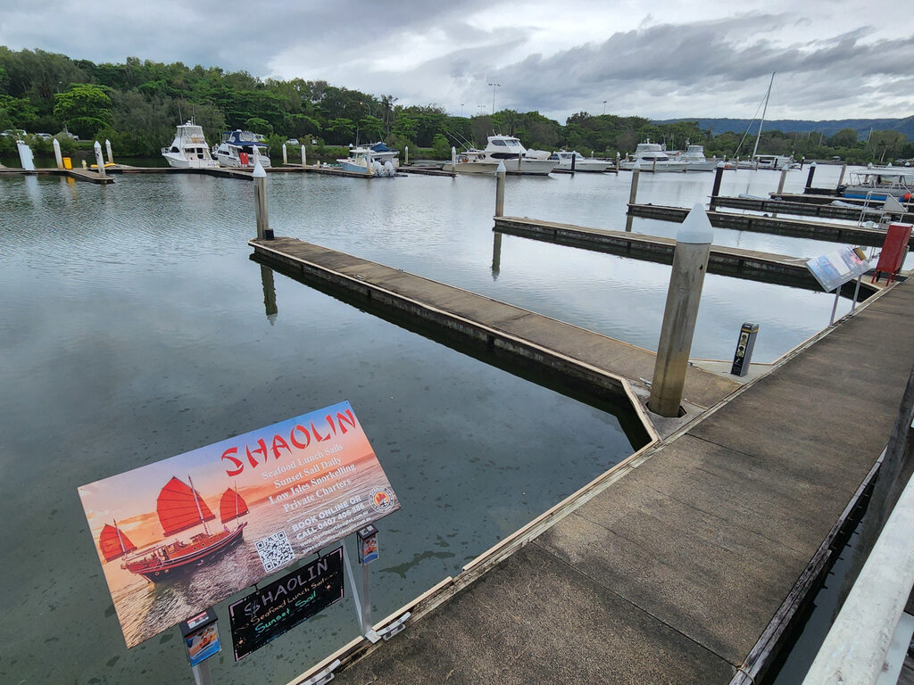 The marina is currently empty of big tour operator boats such as Quicksilver and Calypso, while cruise boat Shaolin Port Douglas released a statement that it would not be operating today.