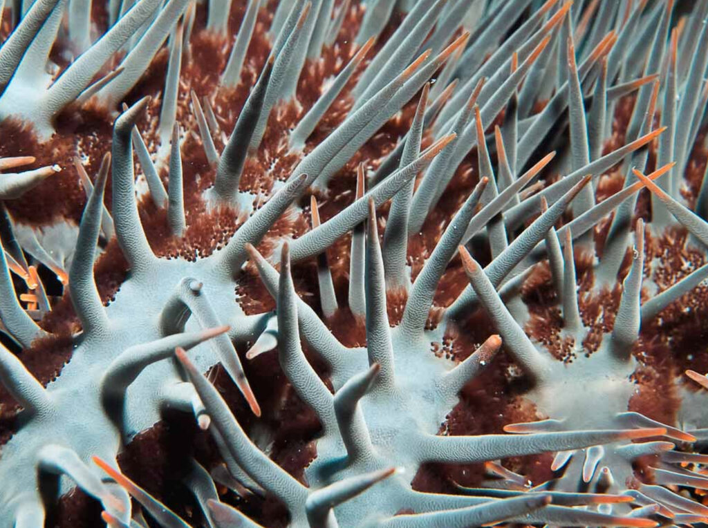 Crown-of-thorns are a native species on the Great Barrier Reef, instantly recognisable by their long, venomous spines.