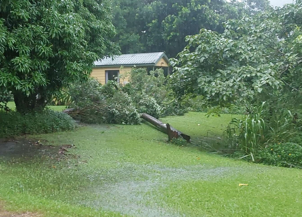 A fallen power pole in the Daintree Rainforest area caused a power outage recently. Picture: Daphne Titus-Rees