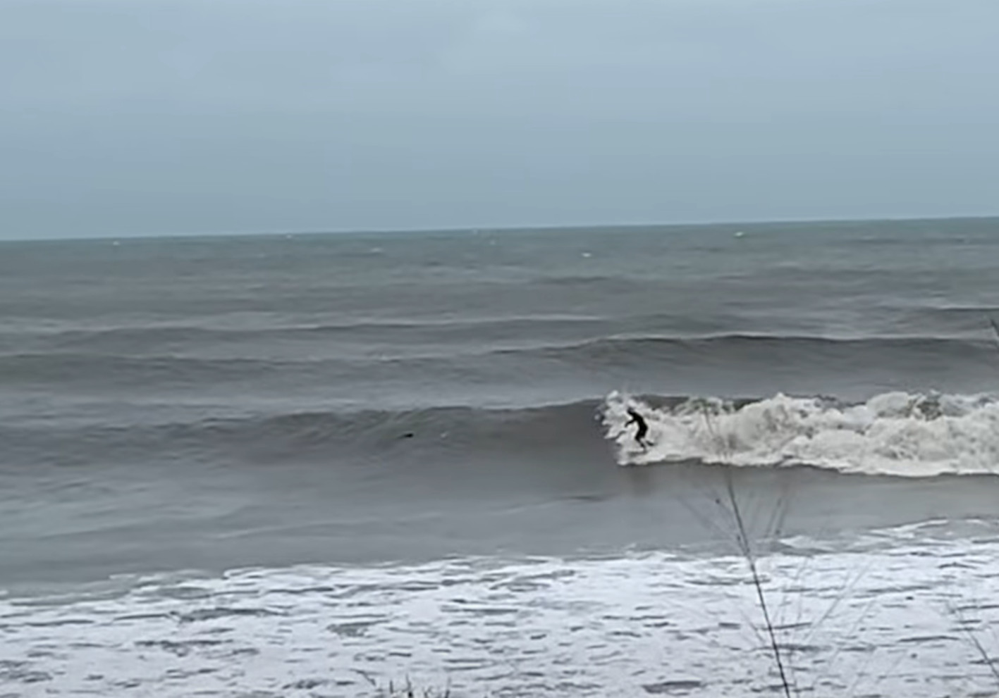 Mr Britton stopped off on his way back to Cairns from Port Douglas and filmed several surfers who had dusted off their boards to brave the waters.